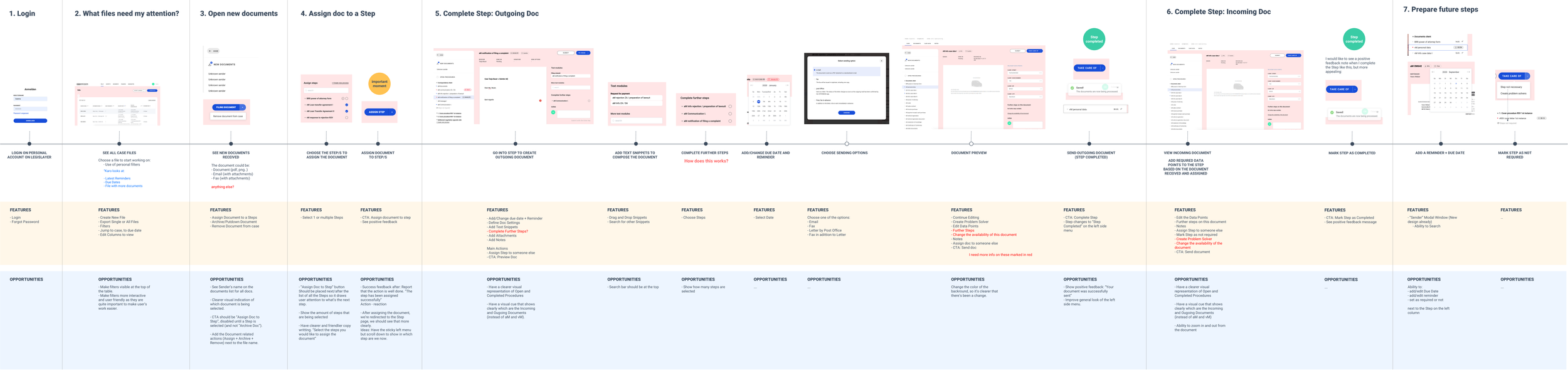 From an in-depth interview with a lawyer, I created this initial user journey map, that allowed me to identify the main task flows (and secondary needs) for a lawyer’s daily work and share a product overview with the whole team.